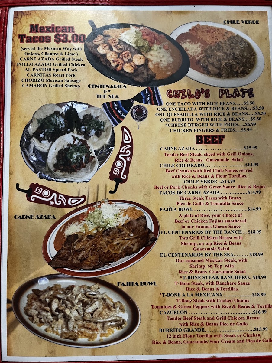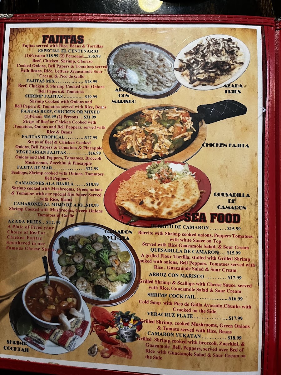 Beef, chicken, shrimp, chorizo cooked onions, bell peppers, and tomatoes, served with beans, rice, lettuce, guacamole, sour cream, and pico de gallo.